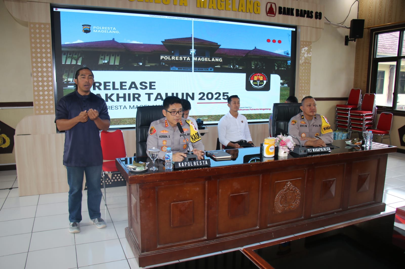 “Rilis akhir tahun ini merupakan bentuk transparansi Polresta Magelang kepada masyarakat terkait pelaksanaan tugas kepolisian sepanjang tahun 2025. Alhamdulillah, situasi kamtibmas dapat terjaga dengan baik berkat dukungan seluruh elemen masyarakat,” ujar Kombes Pol Herbin Sianipar.