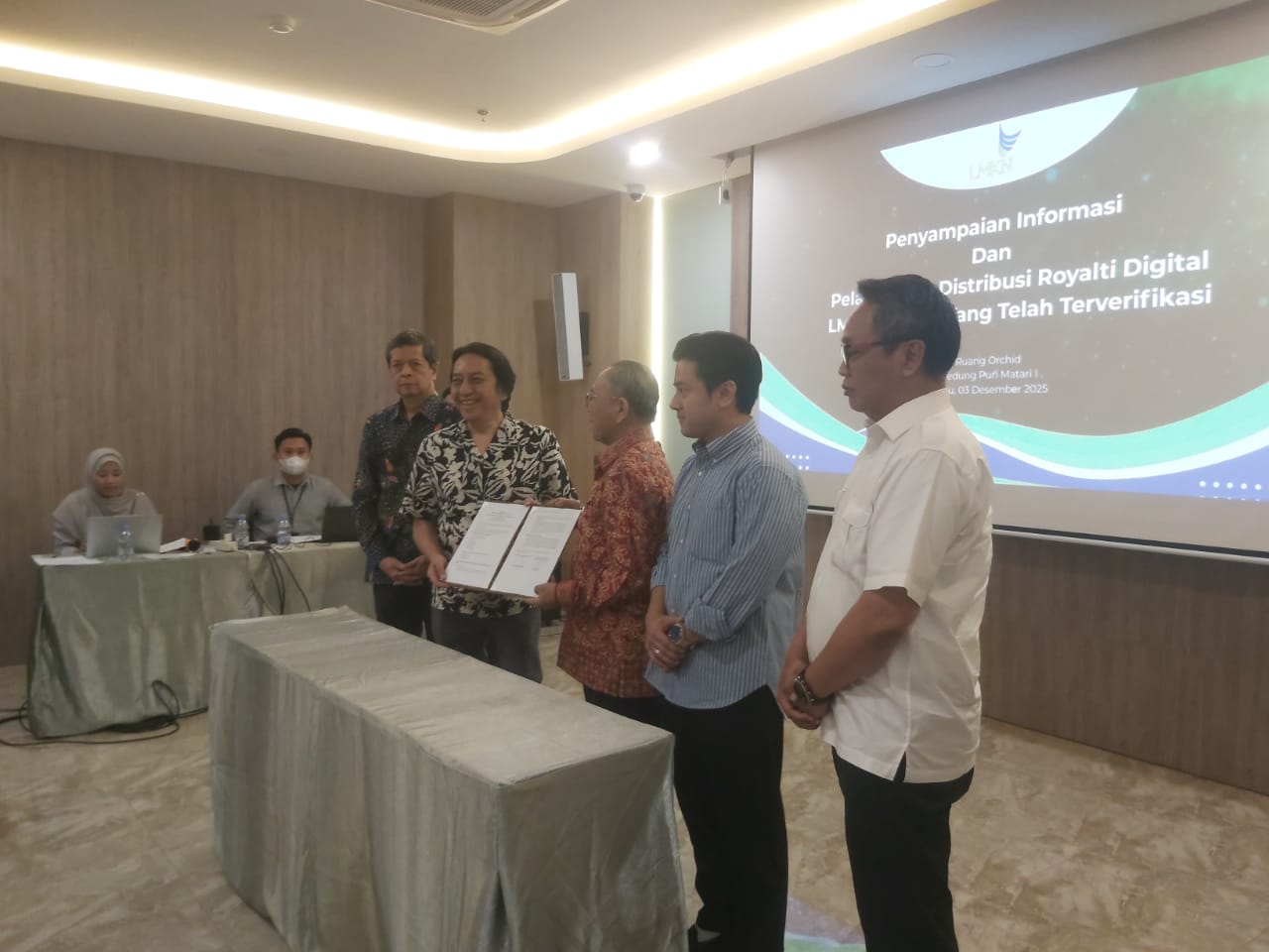 untuk menyampaikan perkembangan terbaru mengenai proses verifikasi dan distribusi royalti digital kepada para LMK Pencipta. Acara ini menjadi momentum penting dalam memastikan transparansi, akuntabilitas, serta penguatan ekosistem ekonomi kreatif berbasis hak cipta di Indonesia.