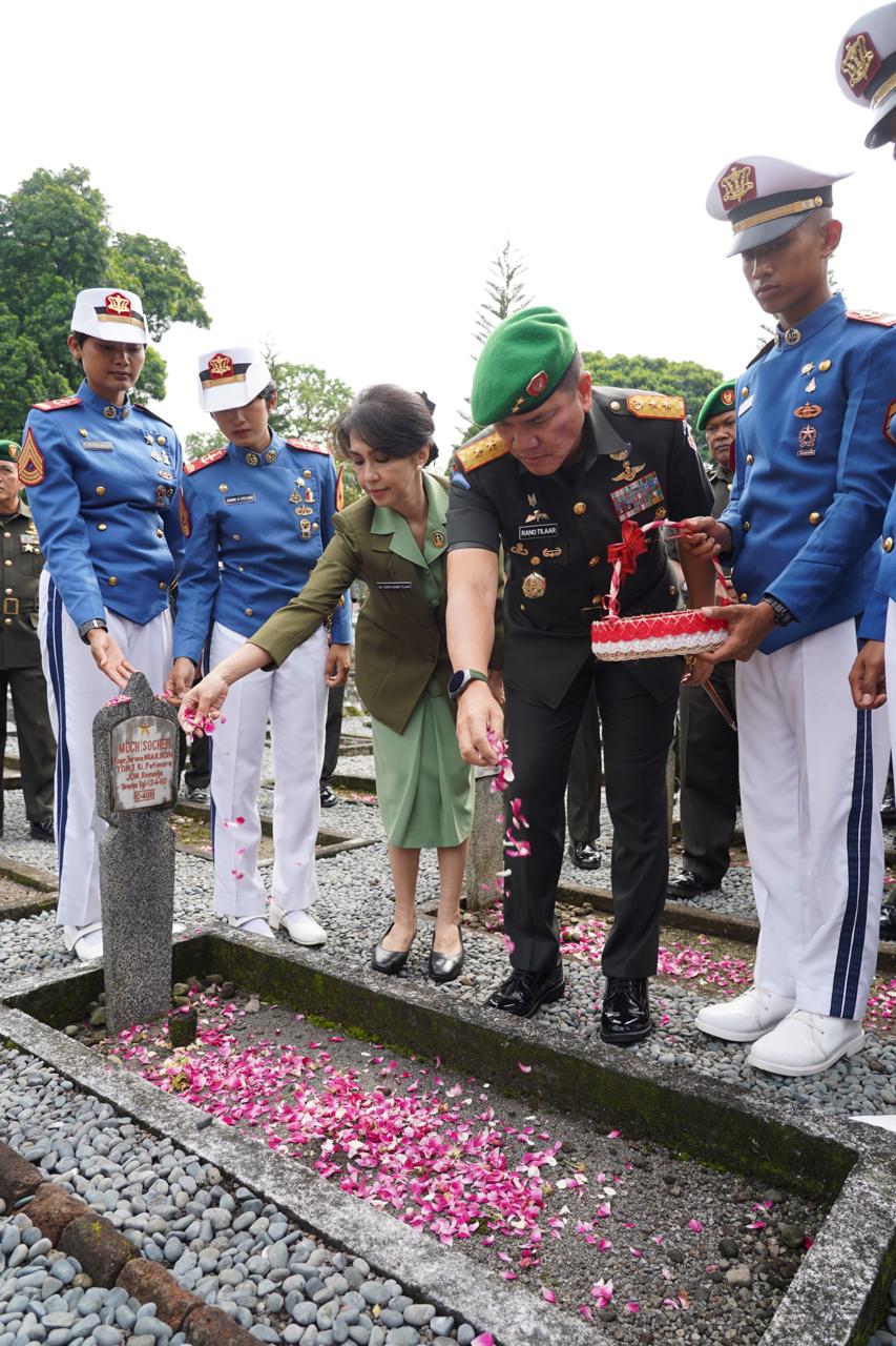 Jelajahnusantara.co.id| Magelang, 10 November 2025 – Dalam rangka memperingati Hari Ulang Tahun ke-68 Akademi Militer (Akmil) Tahun 2025, Gubernur Akademi Militer Mayor Jenderal TNI Rano Tilaar bersama para pejabat Distribusi Akademi Militer beserta ibu, Pengurus Persit Kartika Chandra Kirana Cabang BS Akmil, Pengurus Yayasan Kartika Jaya Cabang XII Akmil, perwakilan organik Akmil, serta perwakilan Taruna Akademi Militer menggelar acara Tasyakuran sesat setelah melaksanakan Ziarah di Taman Makam Pahlawan Giri Dharmaloyo, Magelang.