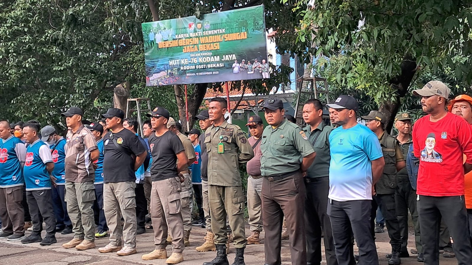 Jelajahnusantara.co.id| Bekasi Kota – Dalam rangka memperingati Hari Ulang Tahun Kodam Jaya ke-76, telah dilaksanakan kegiatan Karya Bakti TNI yang berlangsung pada Sabtu, 13 Desember 2025, mulai pukul 07.30 WIB hingga 08.50 WIB. Kegiatan tersebut berlokasi di aliran sungai Jl. Mawar V RT 03/08, Kelurahan Kali Baru, Kecamatan Medansatria, Kota Bekasi, dan berjalan dengan aman, tertib, serta kondusif.