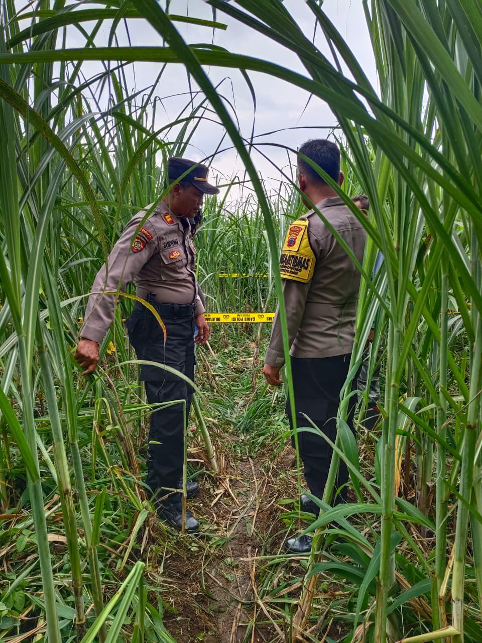 Ia menjelaskan bahwa mayat pertama kali ditemukan oleh dua pekerja kebun tebu berinisial D (66) dan A (60) yang saat itu sedang menyiangi tanaman.